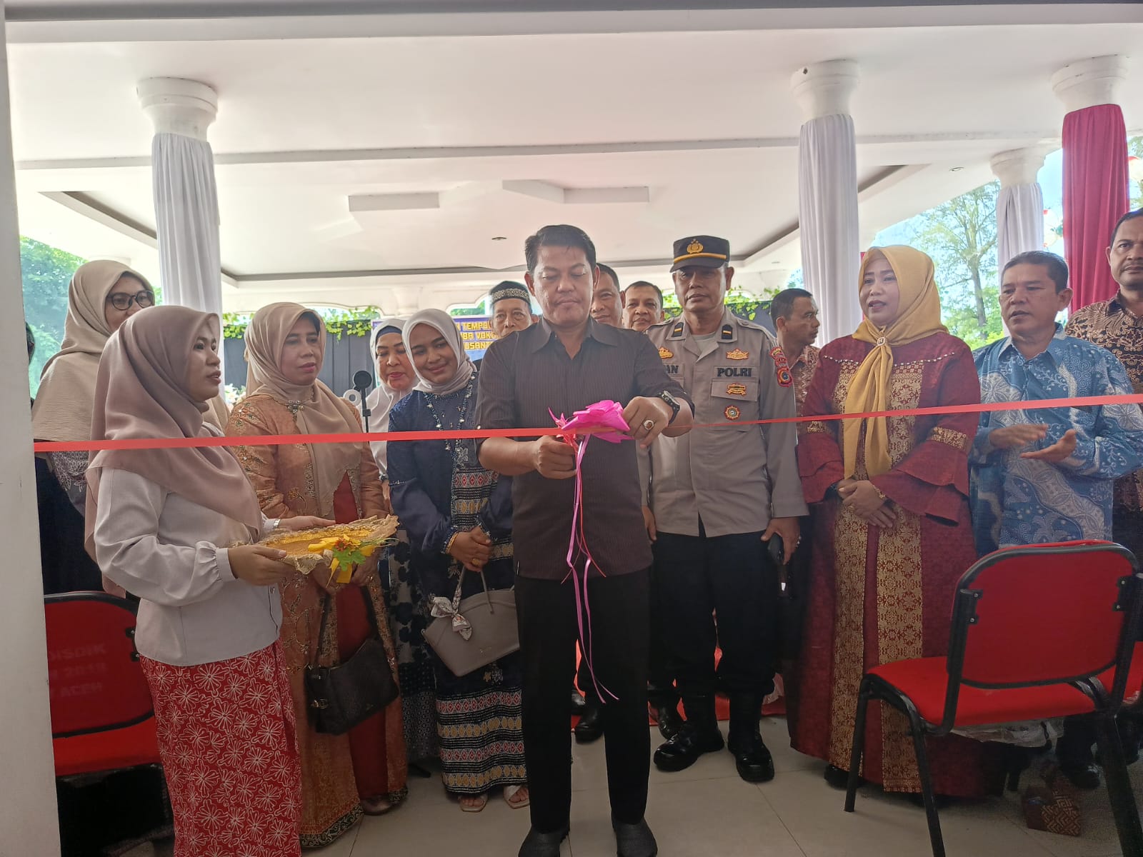 Pj. Walikota Langsa Syaridin, S.Pd, M.Pd diwakili Asisten I Pemerintahan, Keistimewaan Aceh dan Kesra, Suriyatno, AP, MSP, memotong pita sebagai pembukaan acara Pameran yang berlangsung selama 2 hari dari tanggal 13 s/d 14 Juli Tahun 2024.