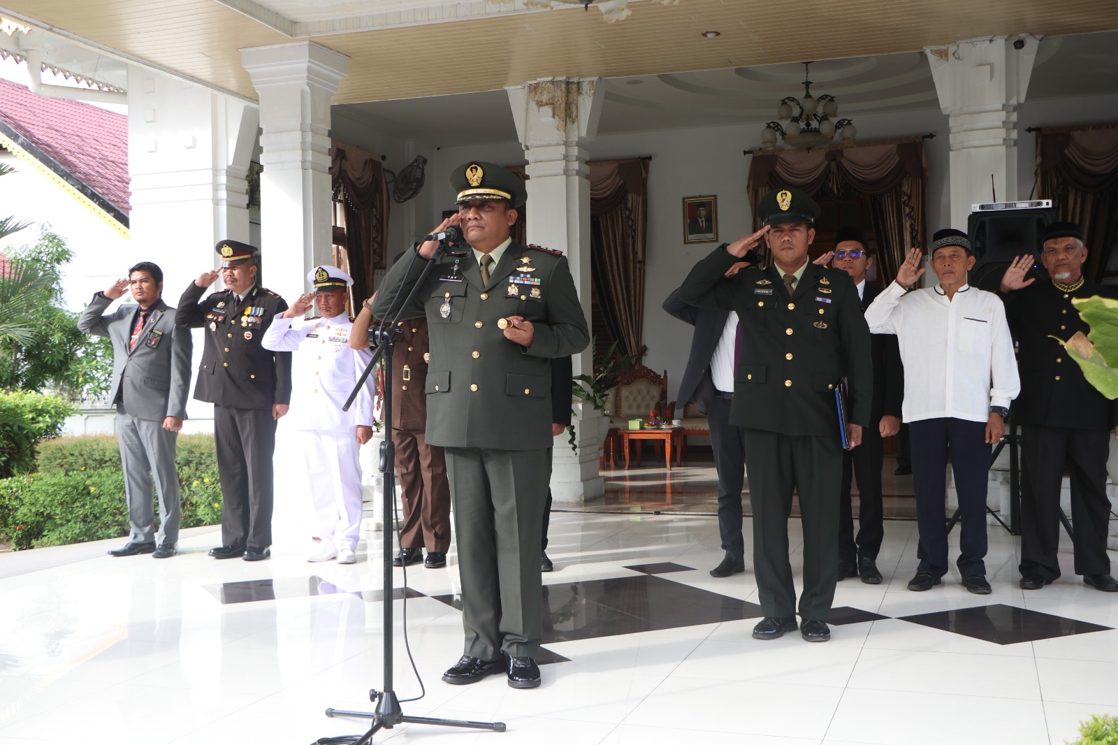 Kota Langsa – Pemerintah Kota (Pemko) Langsa gelar Upacara Bendera Merah Putih dalam rangka memperingati Hari Lahir Pancasila 1 Juni 2024 yang dipimpin oleh Dandim 0104/Aceh Timur Letkol Inf Tri Purwanto, S.I.P, dengan tema “Pancasila Jiwa Pemersatu Bangsa Menuju Indonesia Emas 2045” yang dilaksanakan di Halaman Pendopo Walikota Langsa.