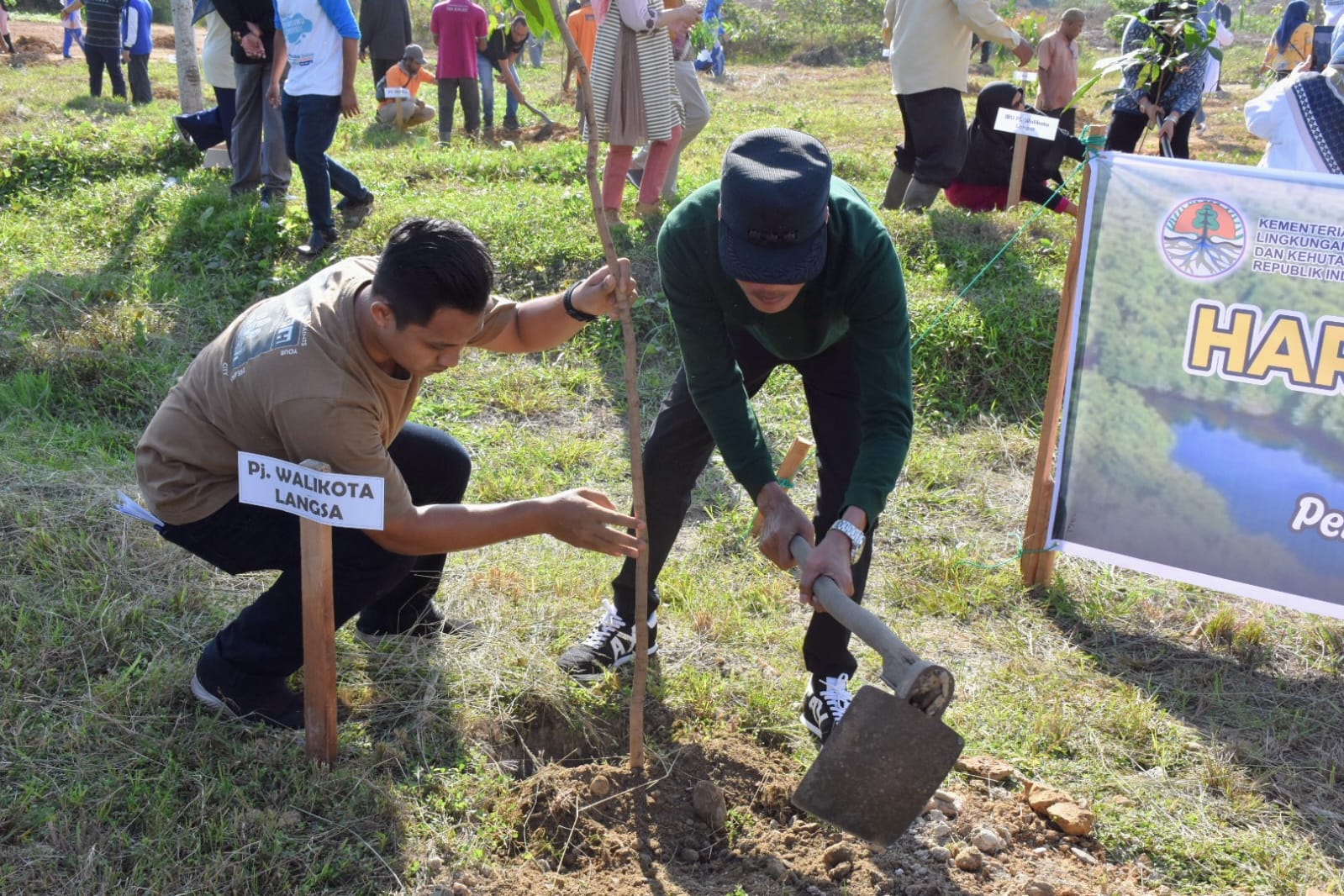 Kota Langsa – Pemerintah Kota (Pemko) Langsa menggelar Gotong Royong dan Penanaman Bibit Pohon, Pembagian Bibit Pohon Gratis, dan Penyerahan 2 Tiket Umroh Gratis kepada karyawan/I, dalam rangka memperingati hari Lingkungan Hidup Sedunia, bertempat di Hutan Kota Langsa Minggu (09/6/2024).