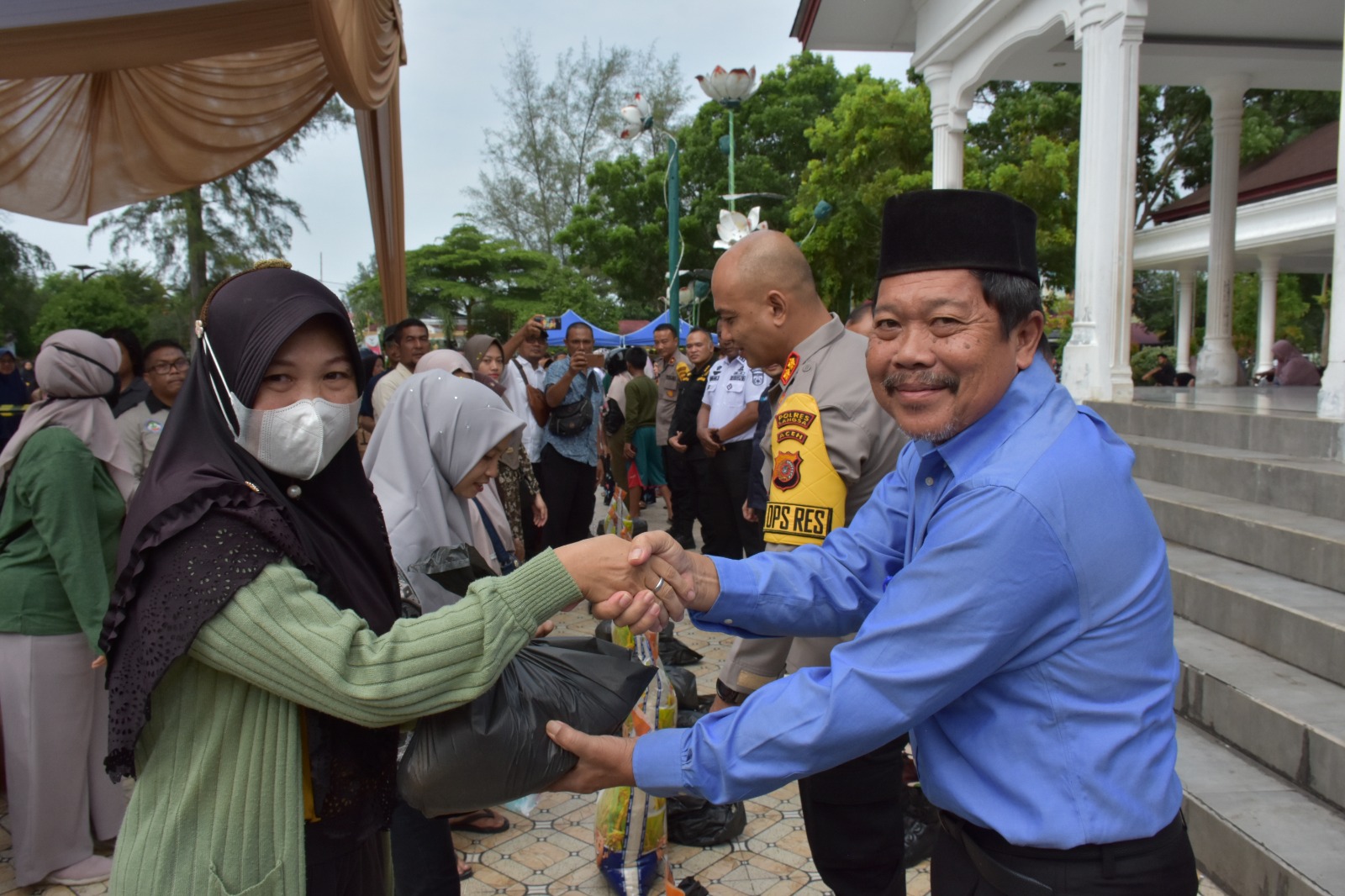 Gelar Pangan Murah Polres Langsa bekerjasama dengan Pemerintah Kota Langsa melalui Dinas Pangan, Pertanian, Kelautan dan Perikanan, Perum Bulog Cabang Langsa.