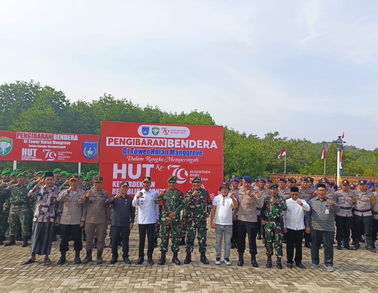 “Hari ini, telah kita laksanakan Pengibaran Bendera di puncak bangunan tertinggi di Kota Langsa, yakni di lokasi wisata Pesisir Timur Aceh dipuncak Tower Hutan Manggrove yang merupakan Icon Kota Langsa”, tutur Syaridin.