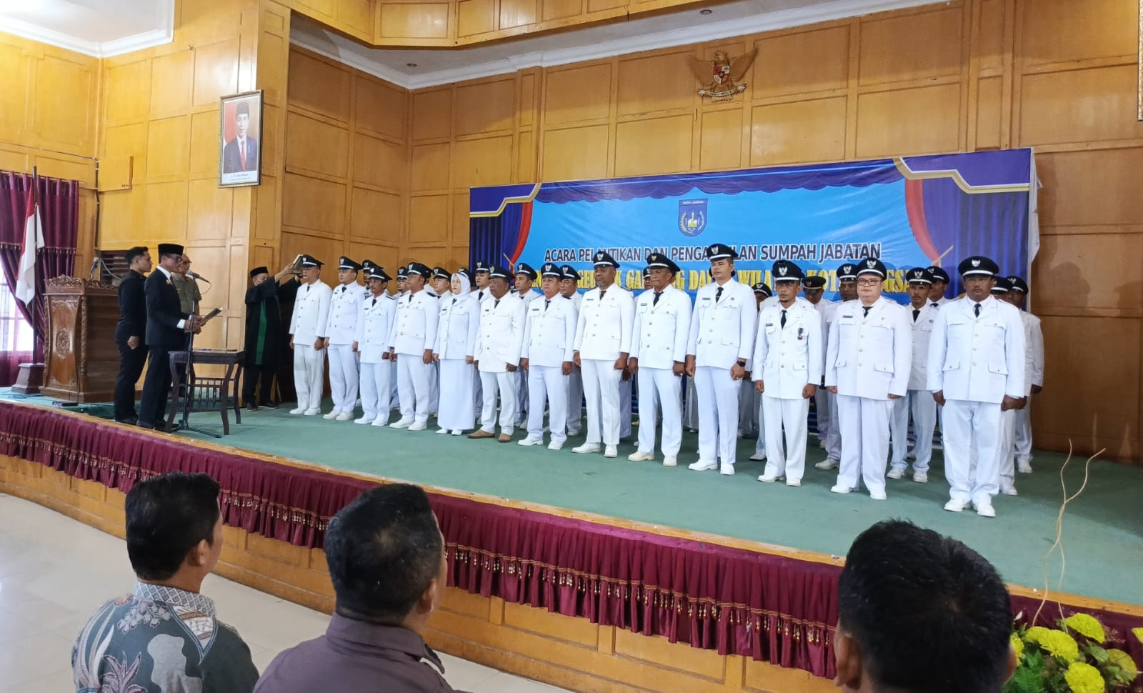 Kota Langsa - Pj. Walikota Langsa Syaridin S.Pd., M.Pd secara resmi melantik dan mengambil sumpah jabatan 38 Penjabat (Pj) Geuchik Gampong dalam wilayah Kota Langsa Tahun 2024, di Aula Cakra Donya, Kota Langsa, Kamis (11/07/24).