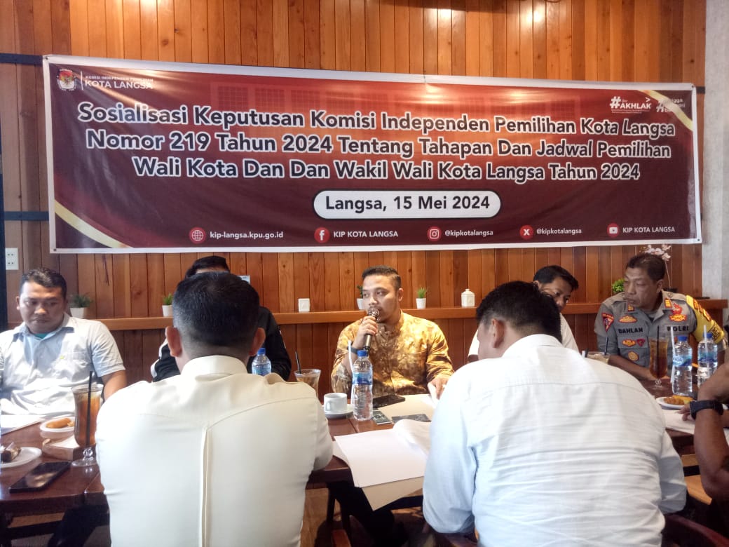 Kota Langsa - Komisi Independen Pemilihan (KIP) Kota Langsa menggelar Sosialisasi Tahapan dan Jadwal Pemilihan Walikota dan Wakil Walikota Langsa Tahun 2024 di salah satu caffe Kota Langsa, Rabu (15/5/2024).