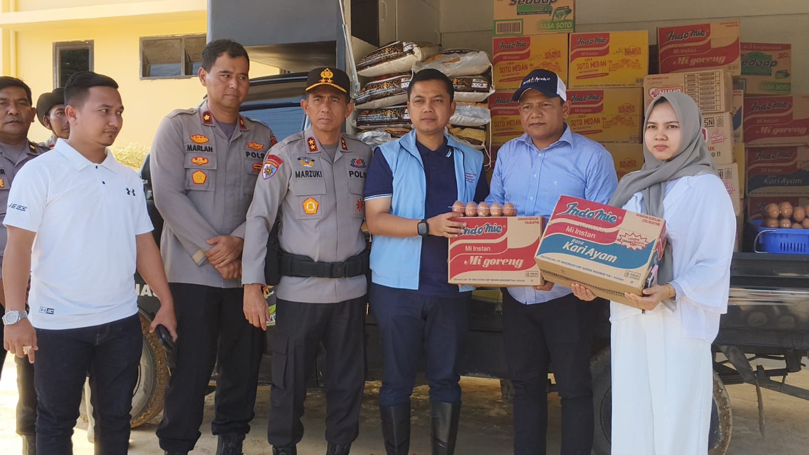 Penyerahan bantuan turut disaksikan oleh Kapolda Aceh, Brigjen Pol Marzuki Ali Basyah, Ketua DPRK Langsa Melvita Sari S.Ab dan Wakapolres Langsa, Kompol Hendra Marlan.
